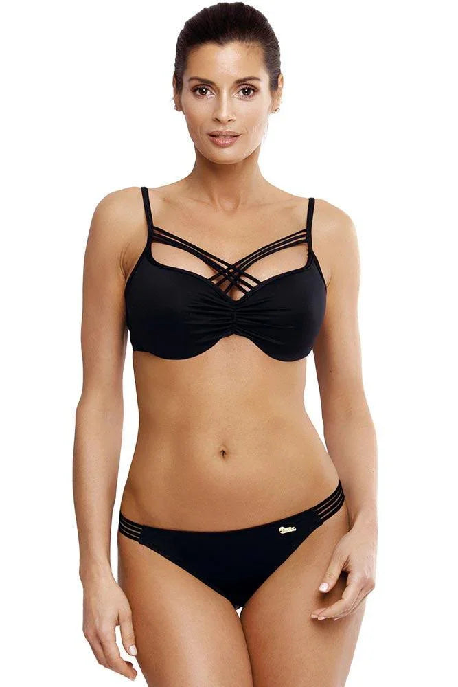 Μαύρο μπικίνι μαγιό με στόλισμα στο μπροστινό του μέρος αλλά και στο πλαϊνό του.