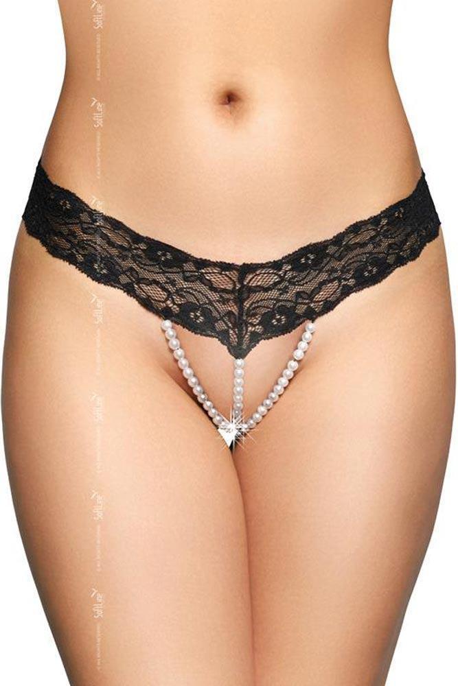 Πρόκειται για μαύρο δαντελένιο string με πέρλες.