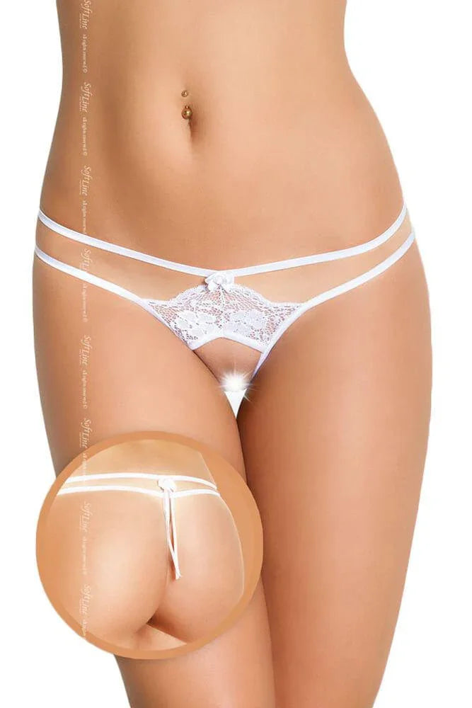 Σε λευκό χρώμα και με μικρές, διακριτικές αλλά ευφάνταστες λεπτομέρειες όπως ο λευκός φιόγκος στο πίσω μέρος και τα κορδόνια του, το γυναικείο εσώρουχο SoftLine White Tail είναι ανοιχτό στον καβάλο, για τις πιο πικάντικες φαντασιώσεις σας!