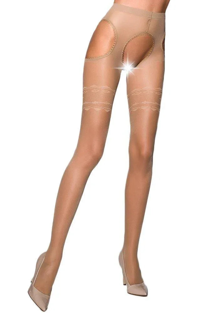 Μπεζ Καλσόν αυτοκινήτου με άνοιγμα στον καβάλο αλλά και στα πλαϊνά και με σχέδιο στον μηρό.
