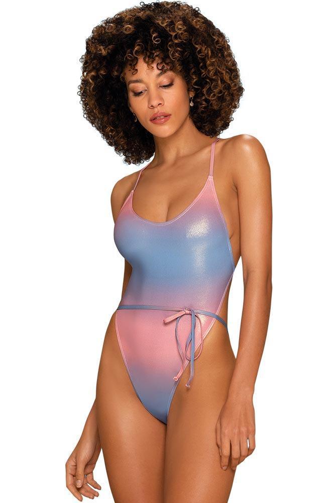 Μεταλλιζέ ιριδίζον ολόσωμο μαγιό σε αποχρώσεις του γαλάζιου και του ροζ από την Obsesssive με τέλεια εφαρμογή.