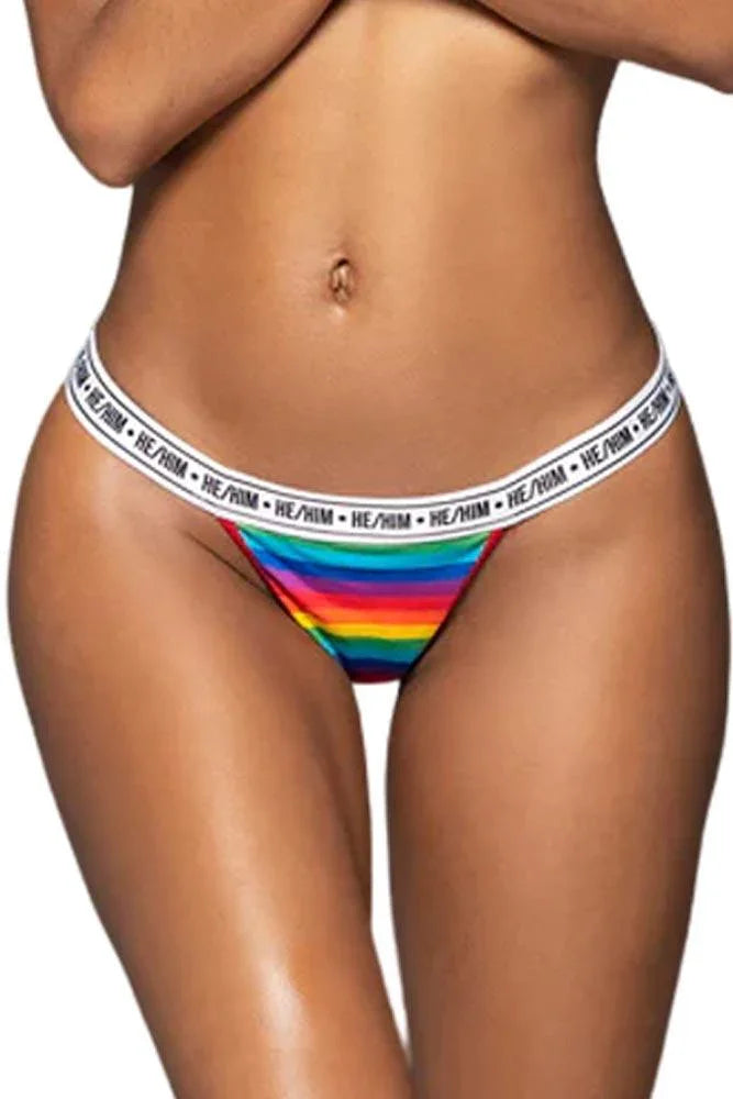 Πολύχρωμο εσώρουχο στρινγκ με λευκό λάστιχο με γράμματα.