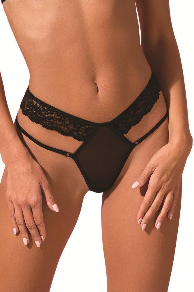 Εντυπωσιακό διάφανο μαύρο στρινγκ με δαντέλα και διπλά κορδόνια να το διακοσμούν.