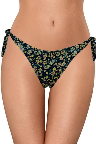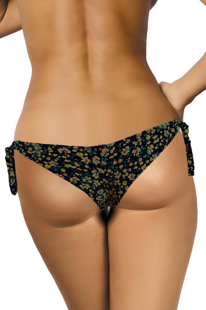 Playful Brazil swimsuit in cypress color with flowers and tie on the side.