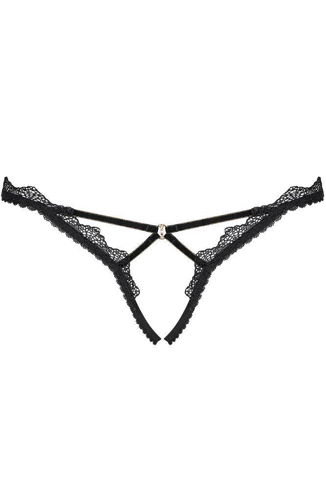 The thong is open at the crotch.