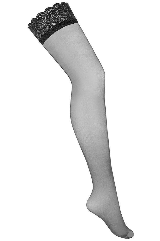 Black KOTEK S017 SILICONE FREE plus size stockings with lace trim, suitable for suspenders.