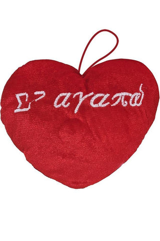 Red hanging heart that says I love you with dimensions 12x10 cm.