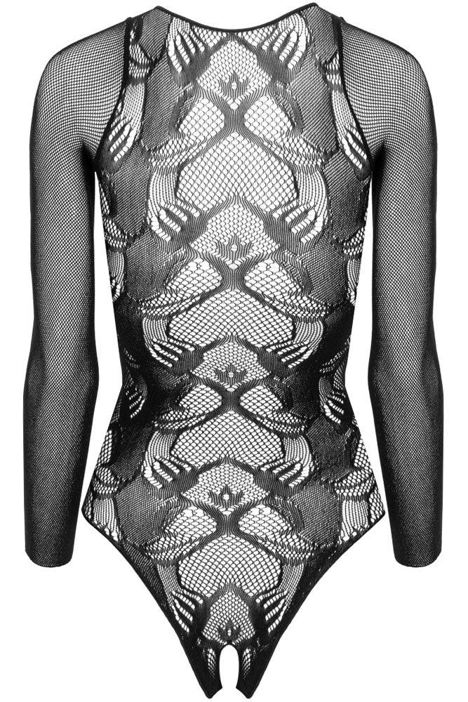 The back is designed in a seductive open back style, enhanced with thin straps that add elegance and a sensual feel. This makes the bodysuit truly eye-catching, whether for special occasions or as a stylish layer under everyday clothes.
