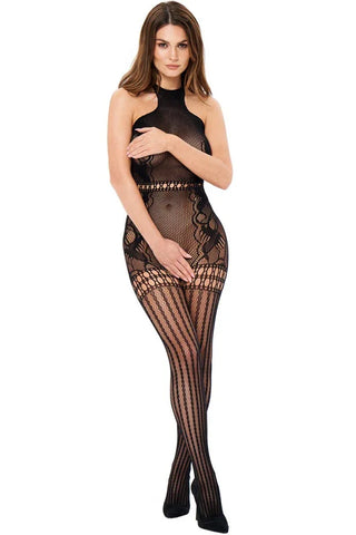 The BG001 full-length tights in classic black are a seductive highlight for special moments. Made of high-quality elastic material, they fit perfectly against the skin, sensually emphasizing the silhouette. The subtle mesh design creates a seductive look, while the cuts and openwork design excite the imagination.
