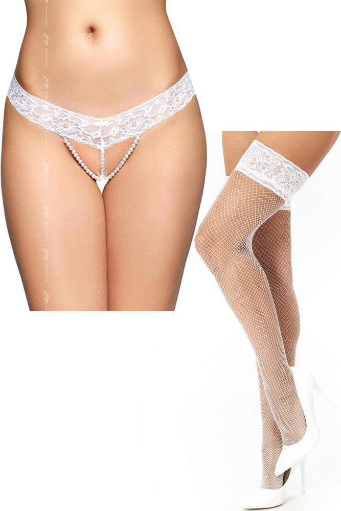 String με πέρλες και κάλτσες με δίχτυ και σιλικόνη