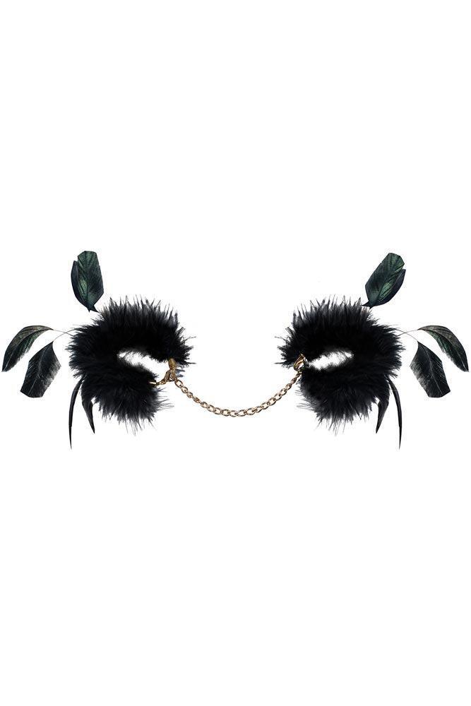 Alluring handcuffs decorated with soft feathers.