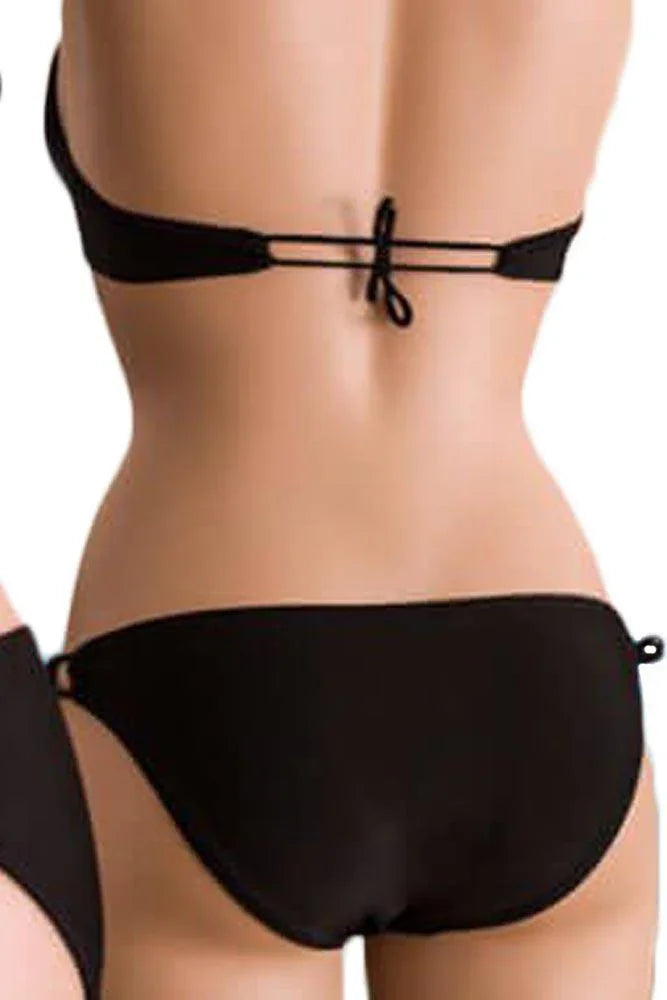 Χαριτωμένο μαγιό σε μαύρο χρώμα, με σταθερή ενίσχυση στις κουπ και κορδονάκι που δένει πίσω απ' το λαιμό για καλύτερη εφαρμογή.
