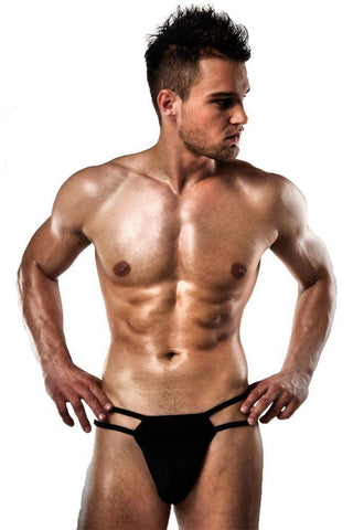 Σέξι ανδρικό στρινγκ σε μαύρο χρώμα, με εντυπωσιακά ανοίγματα στα πλαϊνά.