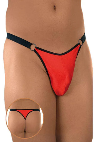 Ανδρικό κόκκινο στρινγκ με μαύρο λάστιχο και μαύρα τελειώματα.
