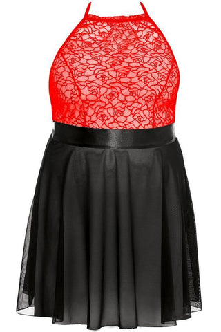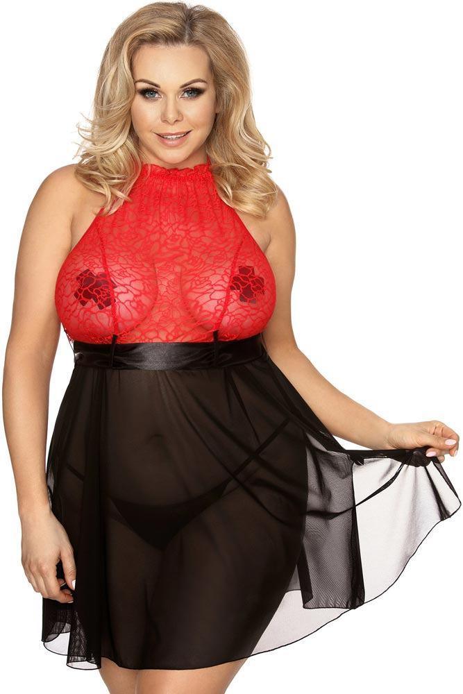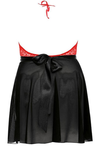 Διάφανο babydoll σε μαύρο και κόκκινο χρώμα κατασκευασμένο από ημιδιαφανές τούλι για να τονίζει διακριτικά την ομορφιά σας.