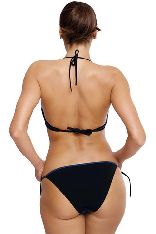 Σκούρο μπλε (ηλεκτρίκ) μπικίνι με μαύρα τελειώματα και σχέδιο στο μπούστο.