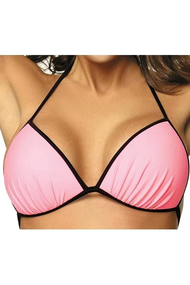 Ροζ μπικίνι τοπ με μαύρο τελείωμα.