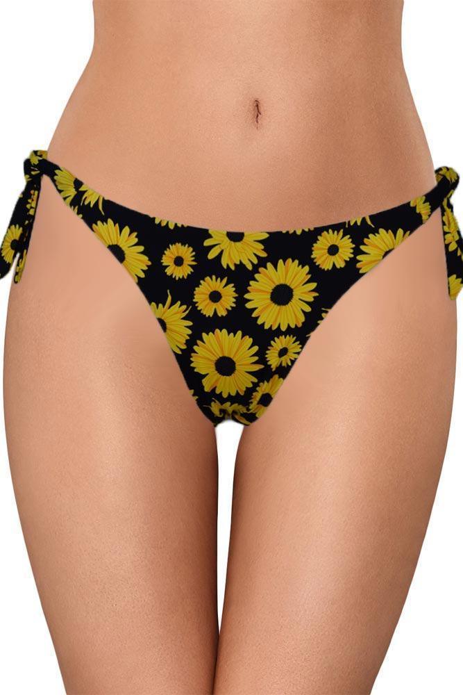 Παιχνιδιάρικο Brazil μαγιό σε μαύρο χρώμα με κίτρινες μαργαρίτες και δέσιμο στο πλάι.