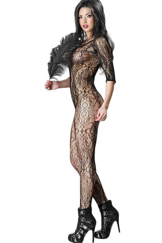 Η αραχνοΰφαντη πλέξη με λουλούδια είναι το κυριότερο μοτίβο αυτού του ολόσωμου καλσόν, το οποίο καλύπτει για να αποκαλύπτει!