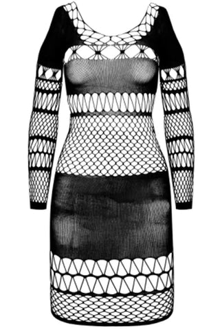 Αποπλανήστε τον σύντροφο σας με αυτό το μαύρο, φλογερό και Super σέξι φόρεμα με μακρύ μανίκι, δίχτυ και διαφάνεια.