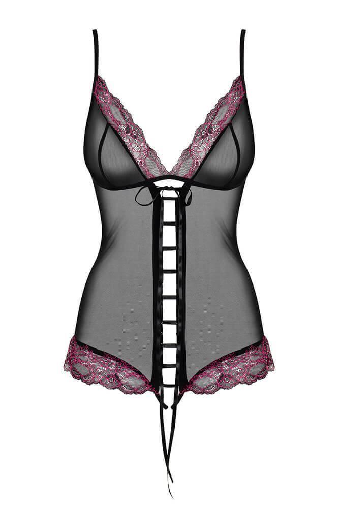 Για αγορές κάτω των 45€, έξοδα αποστολής μόνο από 2,5€Αισθησιακό μαύρο κορμάκι με υπέροχη δαντέλα και μωβ λεπτομέρειες.