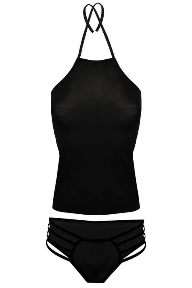 Το γυναικείο σετ εσωρούχων Dkaren Dagie είναι το σετ σε μαύρο χρώμα που έψαχνες, με μια βασική διαφορά. Το επάνω μέρος είναι ένα άνετο και στυλάτο τοπ, που δένει πίσω από το λαιμό, σε ελαστικό ύφος και στενή γραμμή!