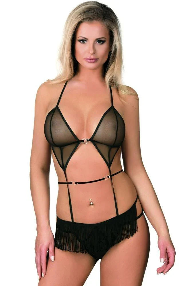 Για αγορές κάτω των 45€, έξοδα αποστολής μόνο από 2,5€Εκρηκτικό κορμάκι με μαύρη διαφάνεια και κρόσσια να στολίζουν το κάτω μέρος του.