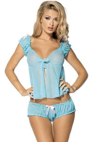 Γαλάζιο σετ εσωρούχων που δένει στο στήθος.