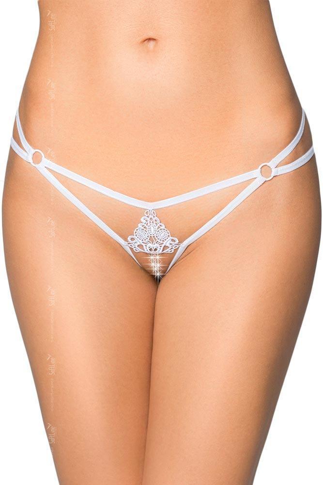 Λευκό string με κέντημα στο μπροστινό του μέρος και δύο κρίκους, ενώ το πίσω στολίζεται με λευκή διαφάνεια.
