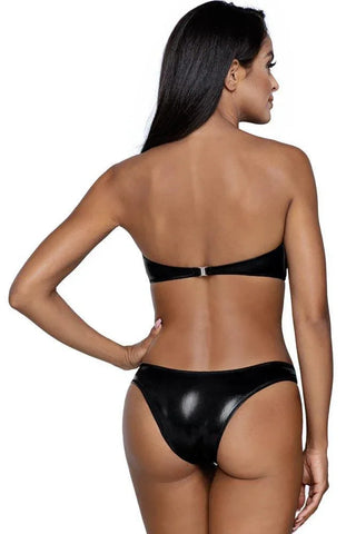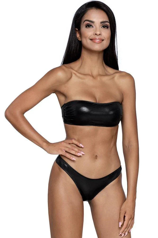 Μαύρο wet look μπικίνι με γυαλιστερή υφή και κοφτό στο πίσω μέρος.