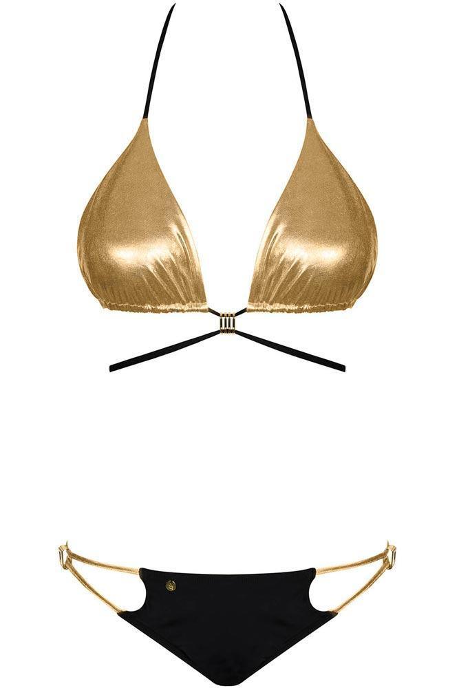 Χρυσό με μαύρο bikini μαγιό από την Obsessive που θα μαγεύσετε στην παραλία φορώντας το.
