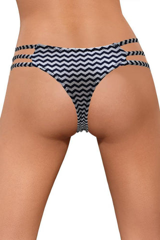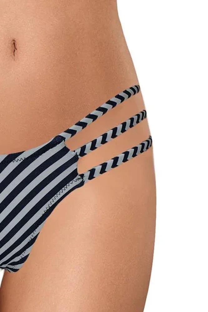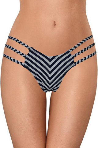 String μαγιό με κοψίματα στα πλαϊνά σε λευκή και μπλε σκούρα απόχρωση με πολύ καλή εφαρμογή τονίζοντας απίστευτα τους γλουτούς σου!