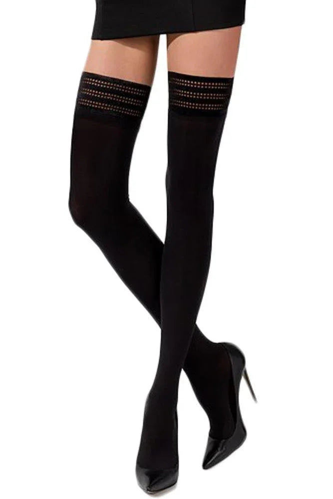 Μαύρες κάλτσες σχεδόν αδιαφανείς με σχέδιο στο τελείωμα.