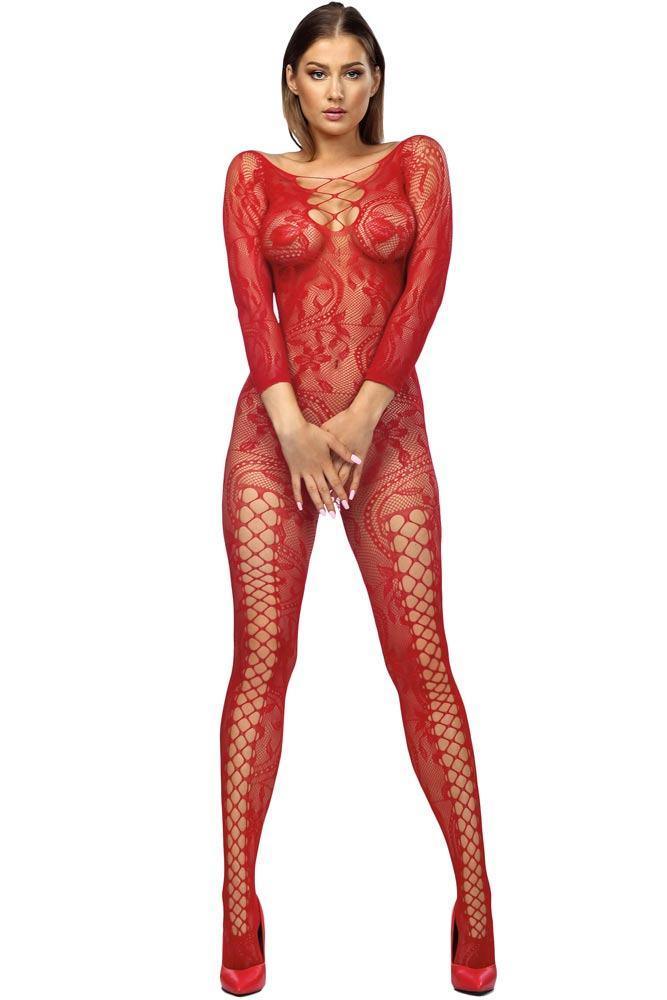 Ολόσωμο κόκκινο διχτυωτό καλσόν με μακρύ μανίκι και σχέδιο από την Anais που θα ξεσηκώσει τον σύντροφό σας!
