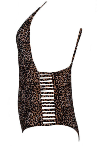 Λεοπάρ ολόσωμο μαγιό που κινείται στις αποχρώσεις του καφέ και του μαύρου.
