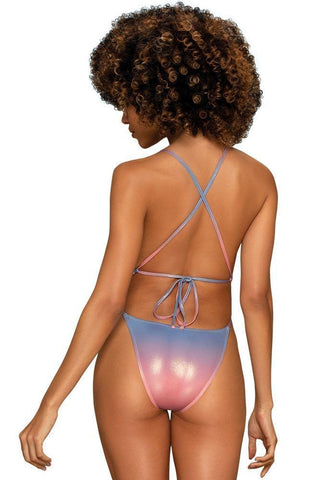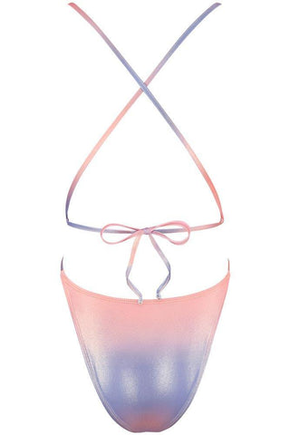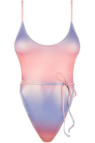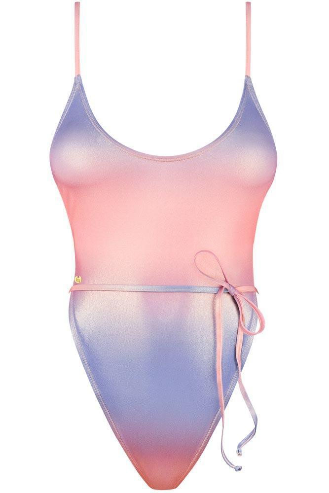 Μεταλλιζέ ιριδίζον ολόσωμο μαγιό σε αποχρώσεις του γαλάζιου και του ροζ από την Obsesssive με τέλεια εφαρμογή.