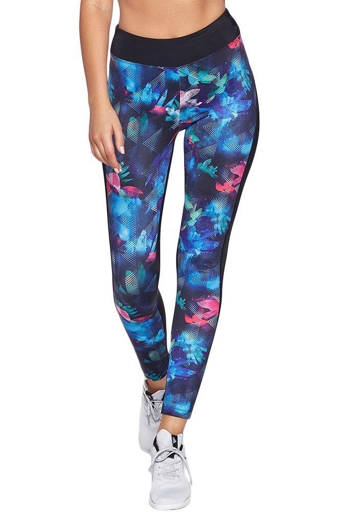 Ελαστικό παντελόνι Yoga - Γυμναστικής με floral σχέδιο στο μπροστινό του μέρος και μαύρο στο πίσω.