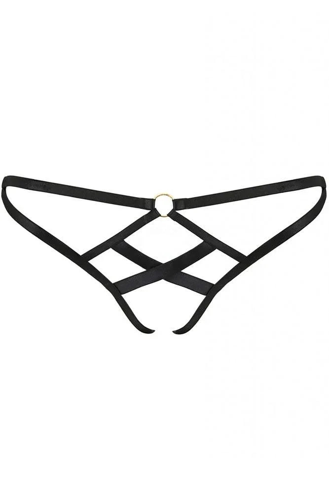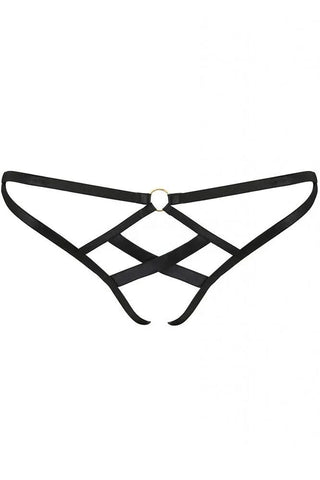 Μαύρο εσώρουχο στρινγκ με ρυθμιζόμενα λουριά ανοιχτό στον καβάλο.