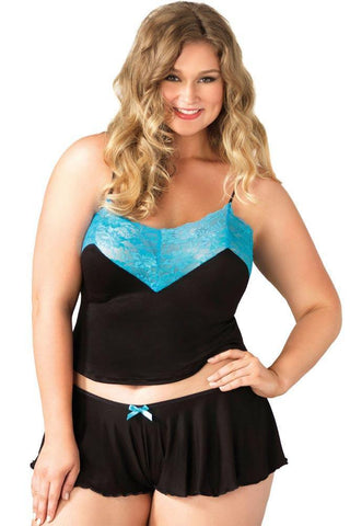 Μαύρο με γαλάζιο σετ εσωρούχων αποτελούμενο από τοπ και σορτς.