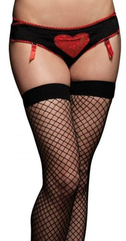 Μαύρο εσώρουχο με κόκκινη καρδιά από δαντέλα στο μπροστινό μέρος και ένα σέξι άνοιγμα στο πίσω μέρος.