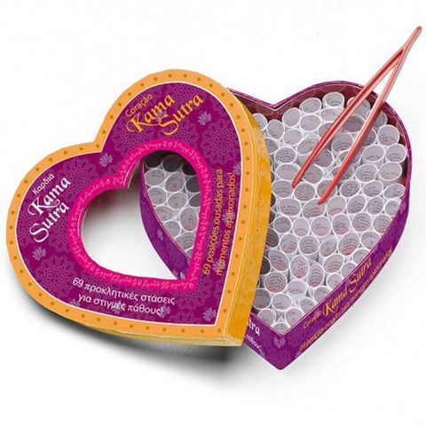 Μια αίσθηση για εσάς και το σύντροφό σας! Χρησιμοποιώντας το τσιμπιδάκι, μπορείτε να επιλέξετε μια περγαμηνή από την καρδιά. Ποια ερωτική στάση σκοπεύεις να δοκιμάσεις; Θα είναι η θεά βόλτα, η βάρκα αγάπης ή η λατρεία; Αποδεχτείτε την πρόκληση και την εμπειρία. Αυτή η καρδιά περιέχει 69 ερωτικές στάσεις οι οποίες προέρχονται κυρίως από την μακραίωνη ινδική Kama Sutra! Οι ανατολίτικες διδασκαλίες του έρωτα. Ανακαλύψτε ποια από τις προκλητικές θέσεις σας αρέσει περισσότερο με ένα παιχνιδιάρικο τρόπο και να θυμάστε ότι είναι πολύ σημαντικό να σεβόμαστε ο ένας τον άλλο. Το στυλ αποπνέει μια πραγματική ινδική ατμόσφαιρα.