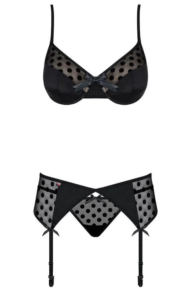 Οι ζαρτιέρες του είναι και αυτές ρυθμιζόμενες. Περιλαμβάνει ασορτί στρινγκ.
