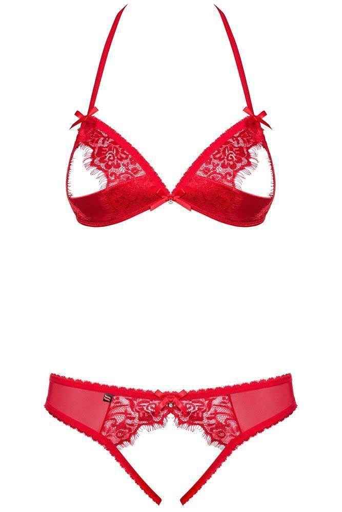 Ξάφνιασε τον σύντροφό σου με αυτό το σετ εσωρούχων από την Obsessive με άνοιγμα τόσο στο στήθος όσο και στον καβάλο.