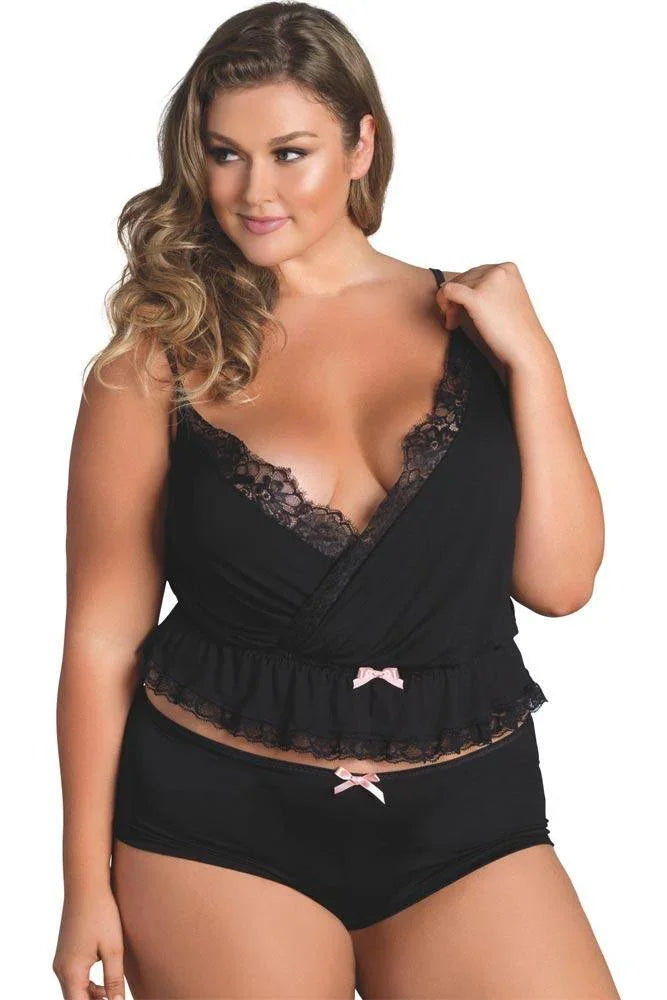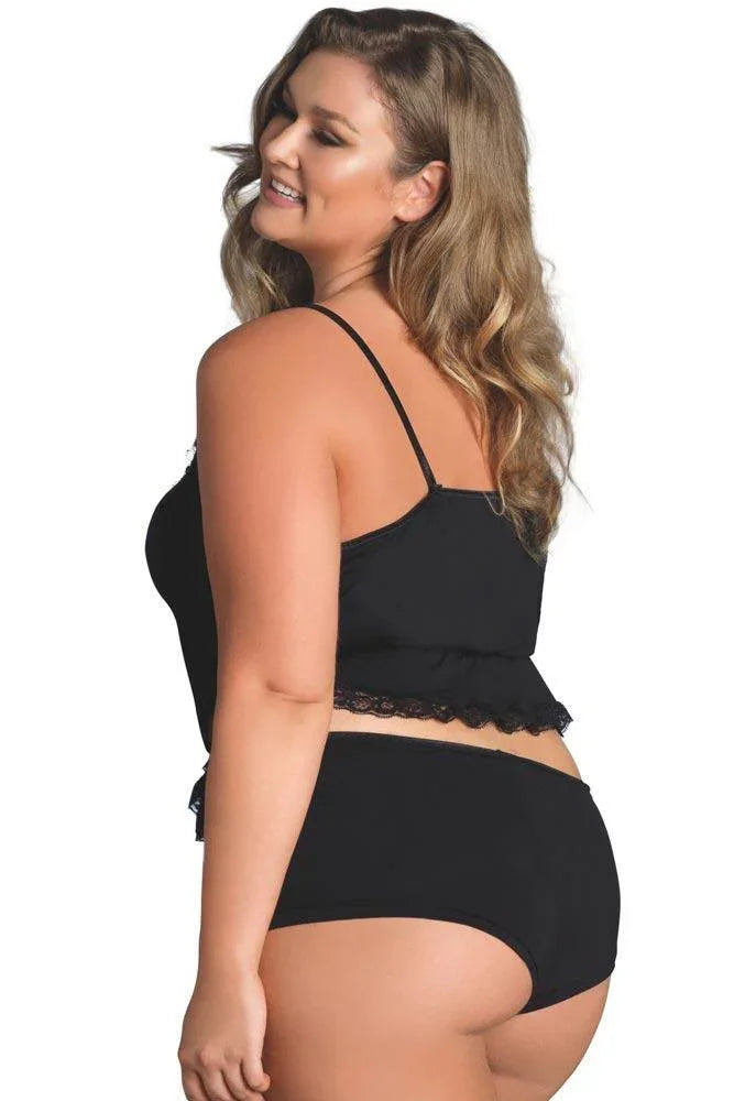 Μαύρο σετ εσωρούχων αποτελούμενο από τοπ και σορτς.