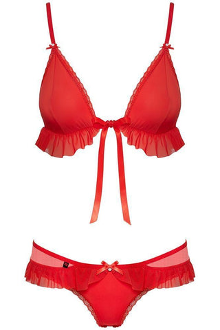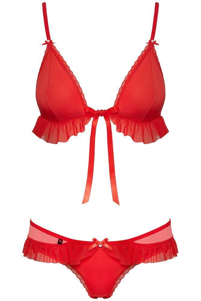 Πρόκειται για ένα σετάκι το οποίο αποτελείται από εσώρουχο, σκούφο και σουτιέν με βολάν, το οποίο μπορεί να αφαιρεθεί και να φορεθεί και σαν απλό σετ!