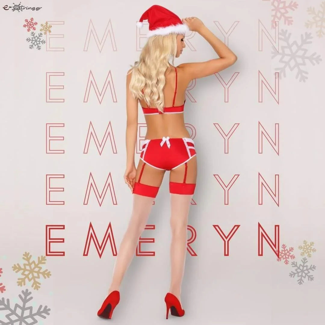 Χριστουγεννιάτικο Σετάκι αγιοβασιλίτσας, το οποίο αποτελείται από σκούφο, σουτιέν, ασορτί εσώρουχο με ενσωματωμένες τιράντες ζαρτιέρας, αλλά και λευκές με κόκκινο τελείωμα κάλτσες .