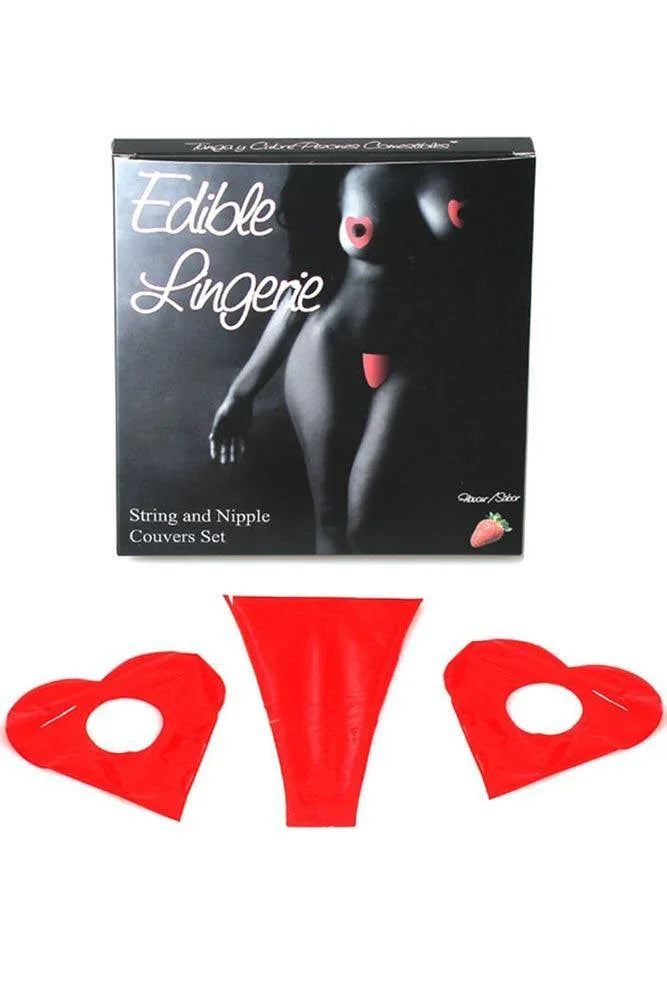 Δώστε περισσότερη γεύση στα ραντεβού σας με αυτό το καταπληκτικό σετ διακοσμητικών στήθος και στρινγκ με γεύση φράουλας.