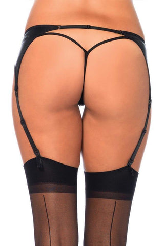 Ζαρτιέρα μαύρη σε wet look χρώμα με ρύθμιση τόσο στις τιράντες, όσο και στο πίσω μέρος.